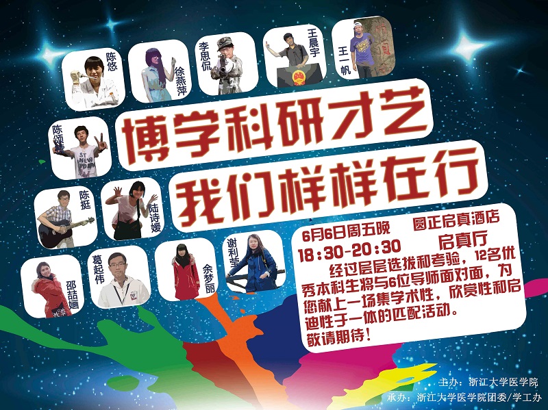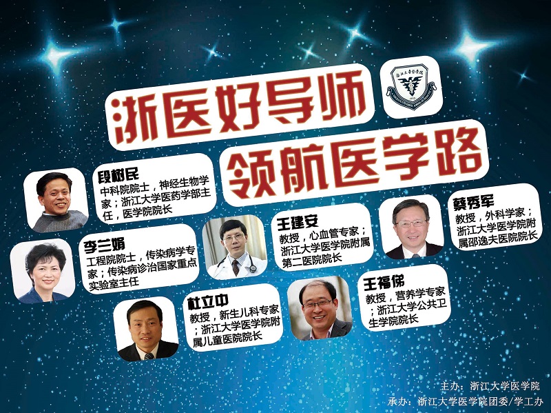 为落实浙江大学六高强校“培养时代高才”战略,充分利用和发挥医学院在卫生事业管理、医学研究和临床方面的优势,学院推出了“浙医好导师 领航医学路”英才培养计划。在低年级本科生中选拔综合素质优秀的学生匹配优秀的专业导师进行全面培养。并通过该活动,以点带面,让更多同学了解导师团队的情况及杰出医学人才的素质要求,激励和引导更多同学主动联系导师,开展科研和临床训练。