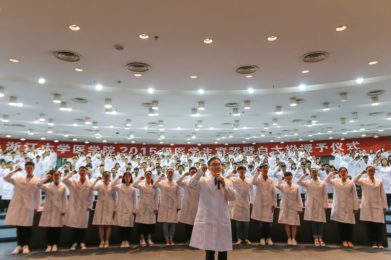 2016年6月12日晚,医学院2015级医学生宣誓暨白大褂授予仪式在紫金港校区蒙民伟楼225报告厅隆重举行。医学院副院长、附属第一医院院长、2015级新生之友代表王伟林教授、医学院党委副书记陈周闻老师、医学院团委/学工办、教学办相关老师、班主任和2015级全体医学生一起出席了本次活动。仪式由学工办副主任杜悦主持。