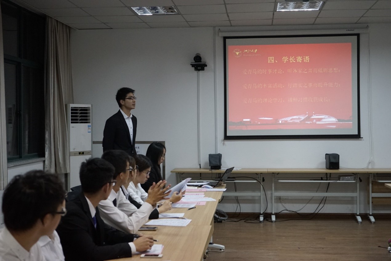 会议开始,陈周闻老师代表学院发表了讲话。陈老师首先就如何办好一件事提出了四个W一个H,即why、when、who、what、how的要求,由此引出作为青马一员,要如何成为一个优秀的马克思主义实践者的话题。作为青马学员,不仅需要思考以及讨论的深度,也需要严明的纪律,这是团队凝聚力的前提。此外,马克思主义理论的学习需要与实践相结合。马克思主义不单单是解决国家与层面问题的理论,更与每个人的实际生活息息相关。她鼓励青马学员去做马克思主义理论坚定的拥护者、模范的践行者与积极的传播者。