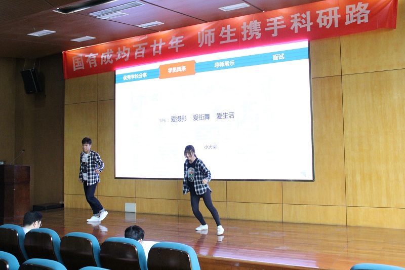在学员风采展示环节,每位同学都上台做了自我介绍,让台下的导师和观众对学员们有一个初步的了解。其中,袁嘉晨同学上台解读了文献,赵帅同学带来了精彩的吉他演奏表演《天空之城》,艾雷蕾同学上台表演了一段激情澎湃,活力四射的拉丁舞《魅力恰恰》,朱泽铖、王琎、陈朝真同学也做了文献解读的展示,柴旭鹏同学则表演了一段节奏和时尚感十足的街舞《舞蹈教会我》。台下掌声雷动,经久不息。