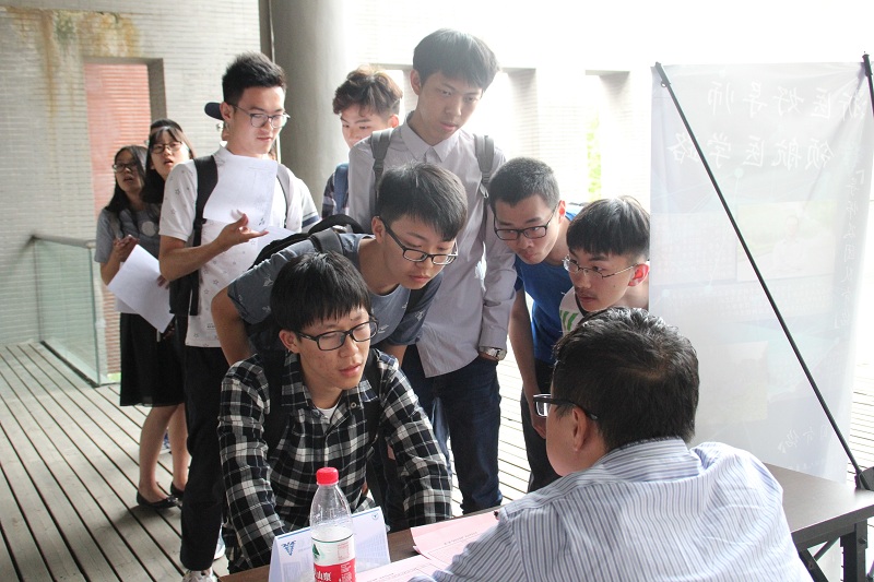 在自由面试环节,各个导师团队在医学院辅楼报告厅外或各自实验室对学生进行现场交流和面试招聘,整个场面非常热闹,同学们积极性很高,导师的桌子前排起长龙。