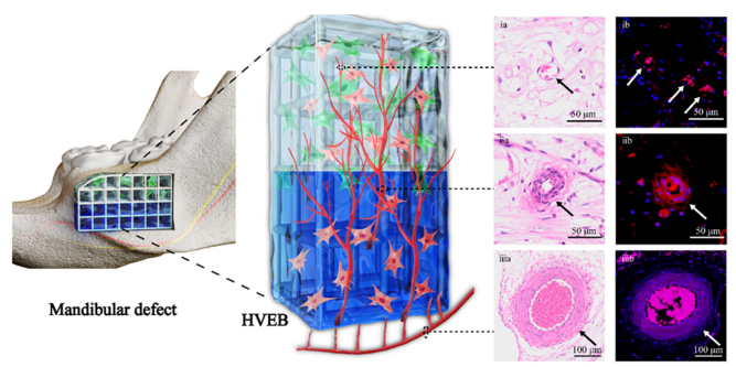 针对组织工程骨移植物易缺血坏死的难题,本项目通过梯度网络水凝胶改善组织工程骨的血供,在体内形成了包含动静脉和毛细血管的多层级血管灌注网络,改善了颌骨植入物易缺血坏死的现状,为临床骨移植物的替代提供了转化新方法。