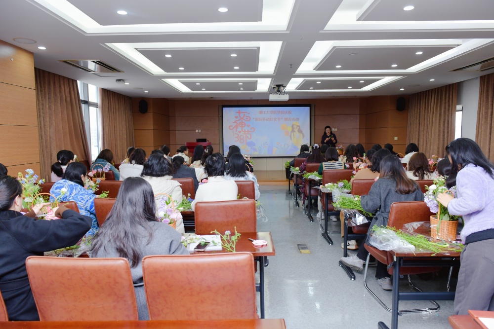 活动伊始,医学院党委副书记、工会主席徐凌霄向全体女教职工致以节日的问候和美好的祝福,希望大家能在插花活动中感受到生活的美好,继而为浙大医学的高质量发展贡献更多巾帼力量。